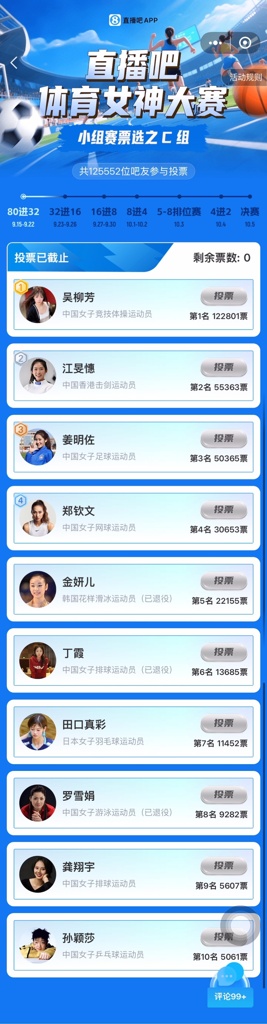 小组赛期间,您可以为所有小组的任何一位您喜爱的女神投票。